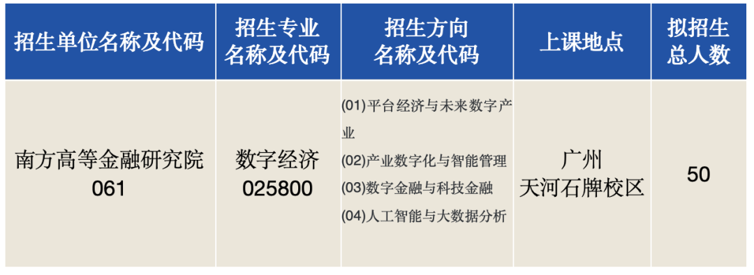 beat365英国官方网站2026年计划面向全国招收数字经济硕士专业学位研究生(非全日制)共50人,该名额较2025年有明显上调,且名额充裕。最终招生计划将以教育部下达的年度指标为准,但整体呈现 “总量充足、预留弹性” 的特点,旨在满足大湾区数字金融、平台经济、产业数字化、人工智能与大数据分析等领域对高端应用型人才的迫切需求,为更多有志于数字经济领域的在职人员提供深造机会。