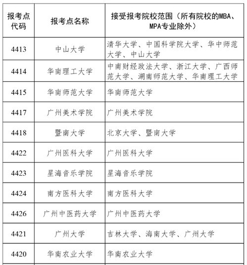 3.广州市共设置23个报考点,考生需按报考点接受范围进行报考(见下表)。