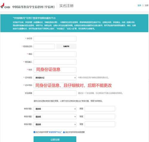 若无学信网账号,考生应实名注册账号后再登录,注册页面如下: