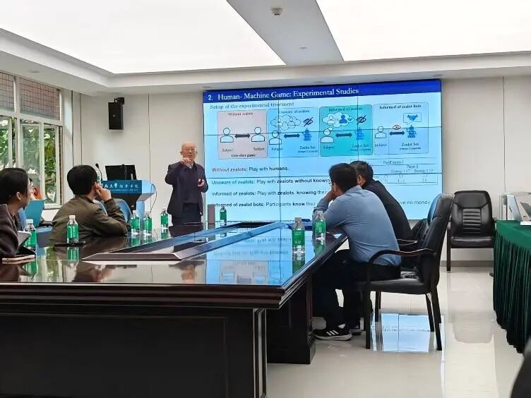 在交流环节中,石磊教授就人机博弈的实验方法、模型构建以及智能体策略等问题与在场师生进行了充分互动,讨论内容涵盖研究选题、数据获取、模型适用性和跨学科研究路径等多个方面。师生们普遍表示,本次报告思路清晰、内容扎实,不仅加深了对人机协同与合作行为演化等前沿问题的理解,也为他们后续开展相关研究提供了新的视角和启发。活动在开放而融洽的氛围中顺利结束。