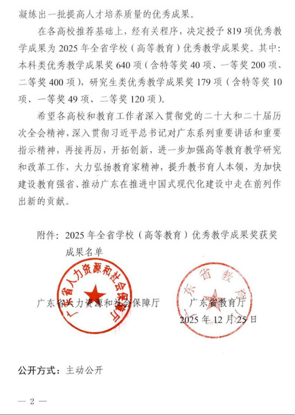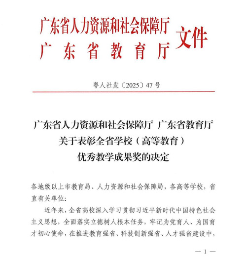 广东省省级优秀教学成果奖是经广东省政府批准、由省教育厅组织评选的全省教育教学领域最具权威性、影响力的奖项,是衡量高校教学水平与人才培养质量的重要标杆。